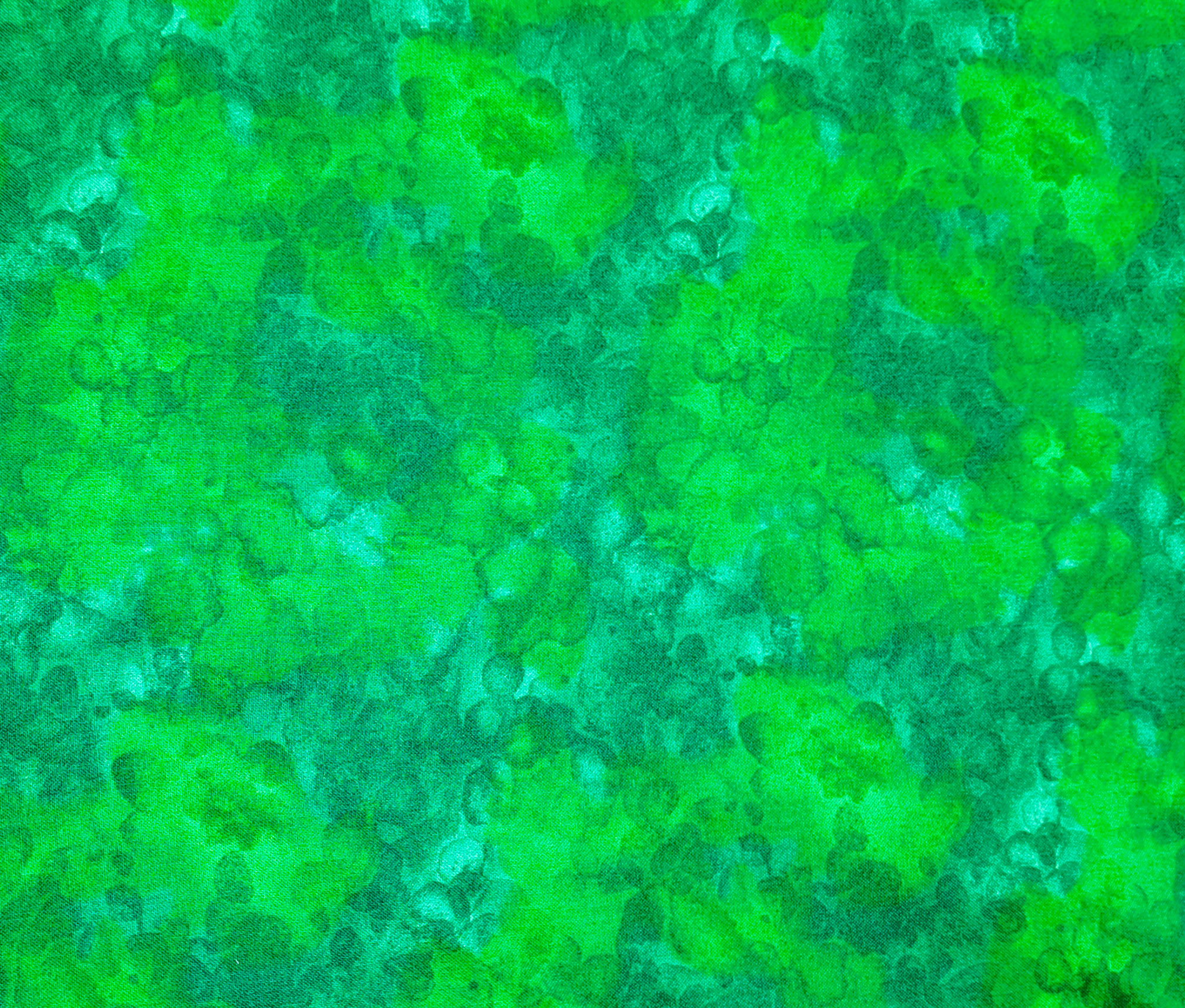 Des bulles vert d’eau et émeraude se fondent en douceur, comme un feuillage sous une lumière humide.