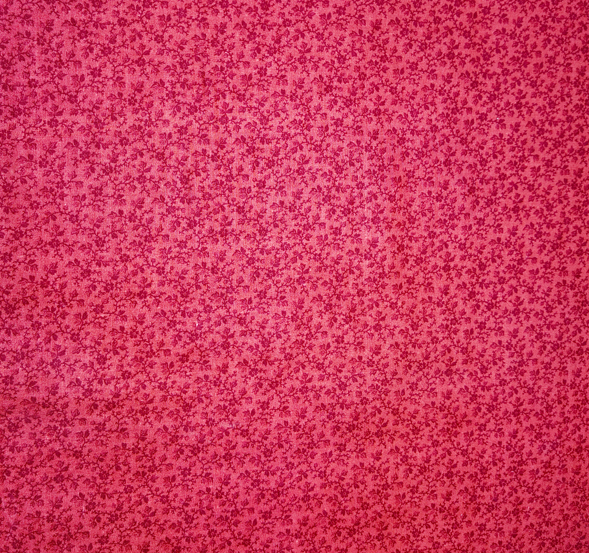 Un fond rouge framboise ponctué de fines silhouettes florales, délicatement ton sur ton.