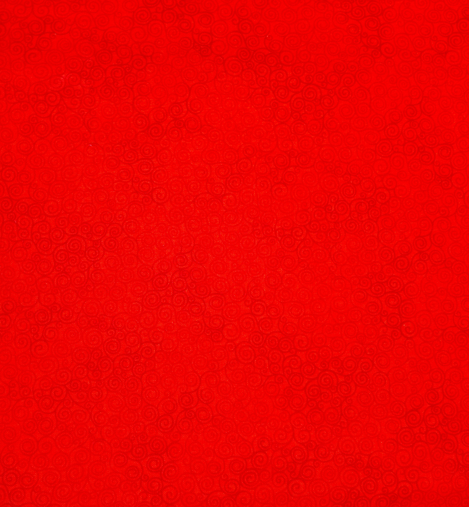 Rouge éclatant et vif, parcouru de spirales légères ton sur ton, ce tissu rayonne d’une énergie solaire.