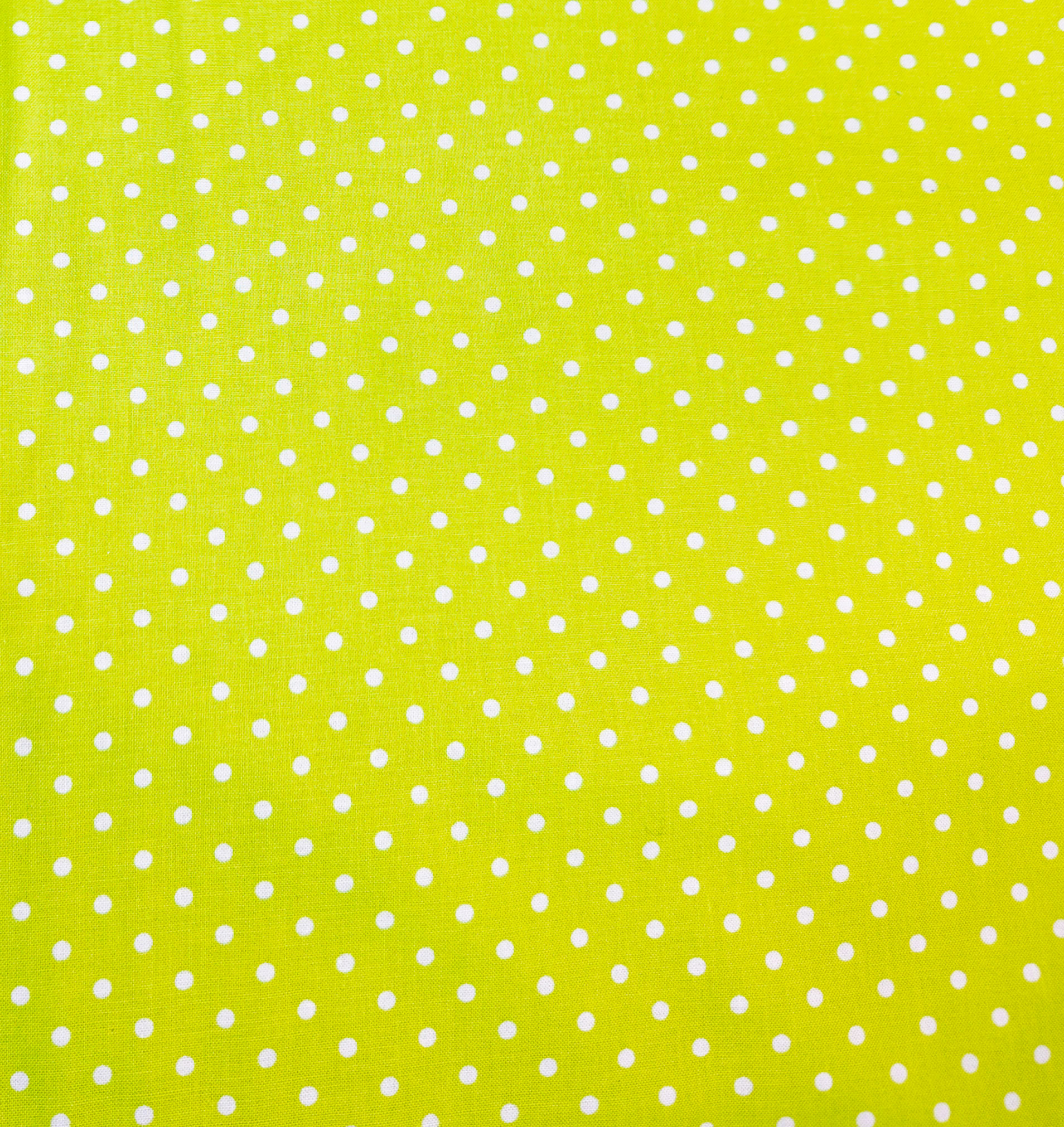 Un vert anis éclatant sert d’écrin à une pluie de pois blancs, espiègle et lumineuse.