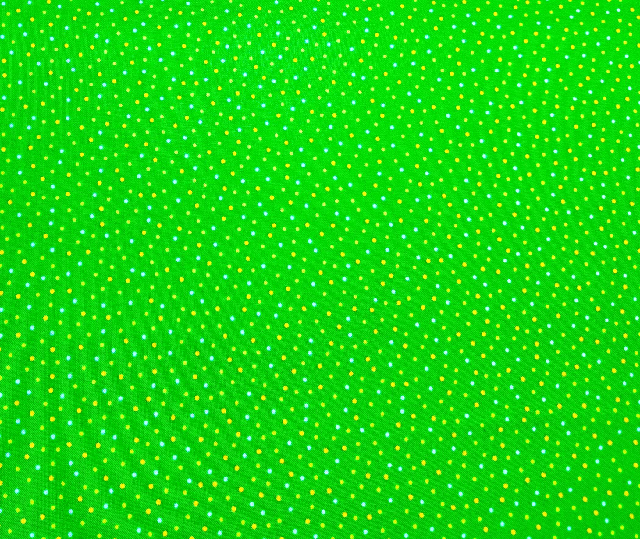 Vert vif animé de pois jaunes et bleus, un jeu de couleurs acidulées plein de fraîcheur.