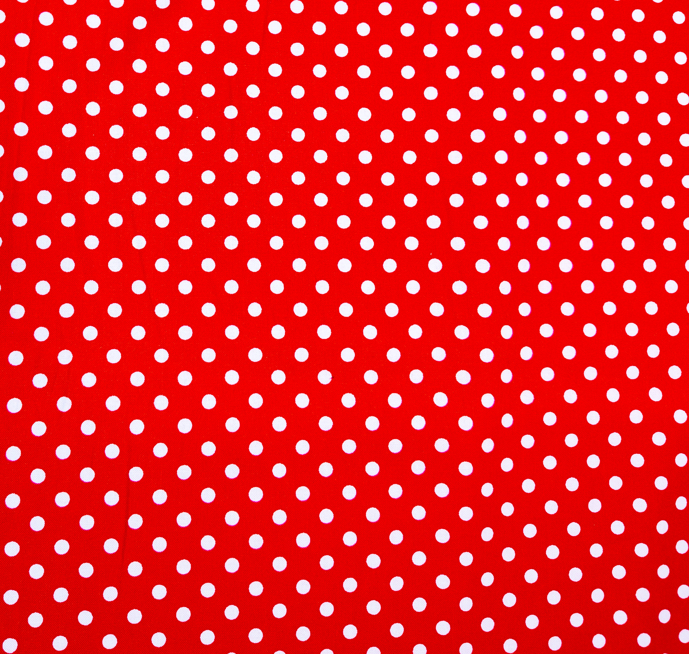 Rouge vif semé de pois blancs réguliers, un motif joyeux et intemporel à l’esprit rétro.