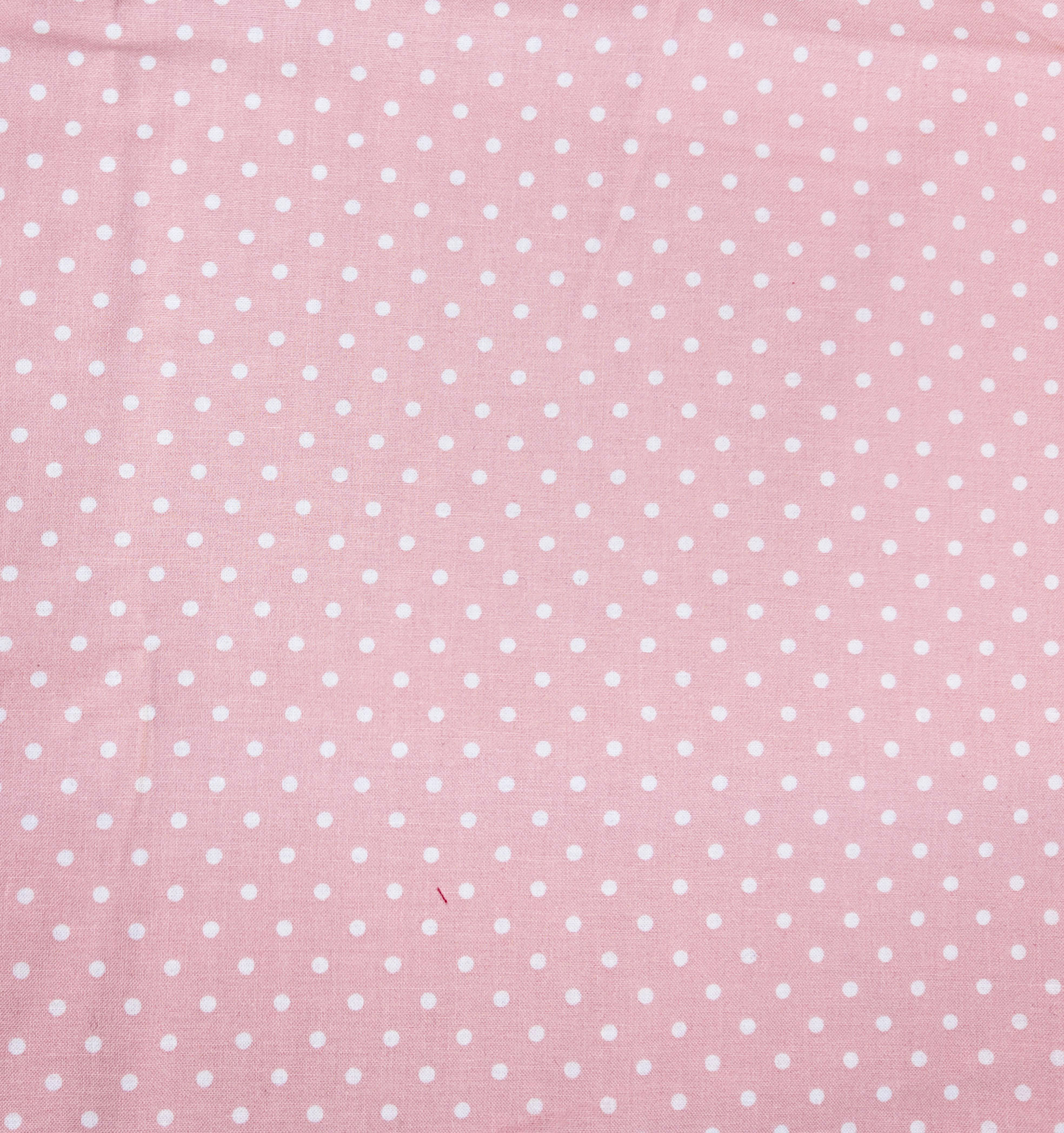 Rose tendre rehaussé de pois blancs fins, un esprit délicatement rétro plein de douceur.