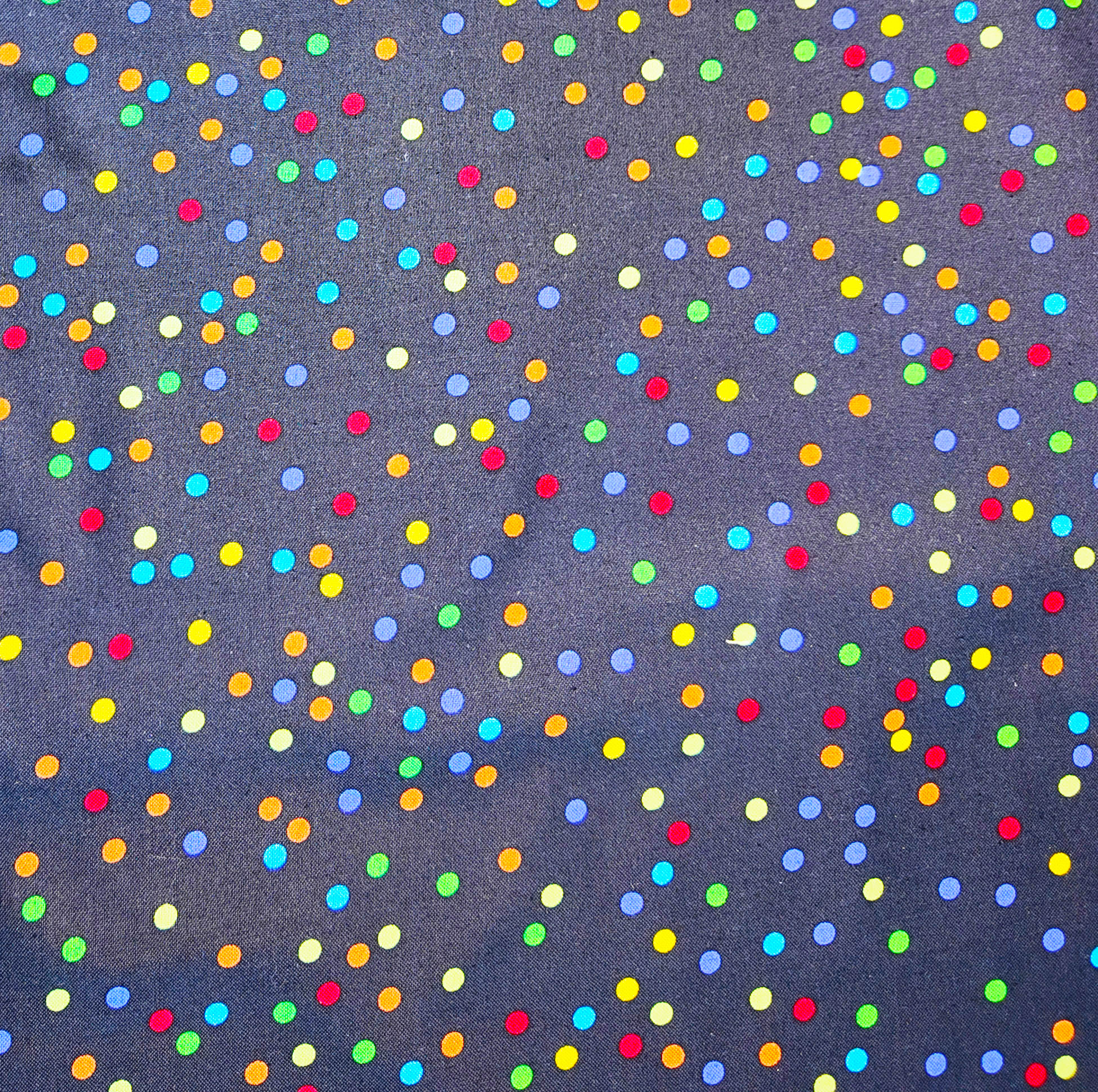 Sur fond gris foncé, une pluie de pois multicolores jaillit comme une confettis de fête.