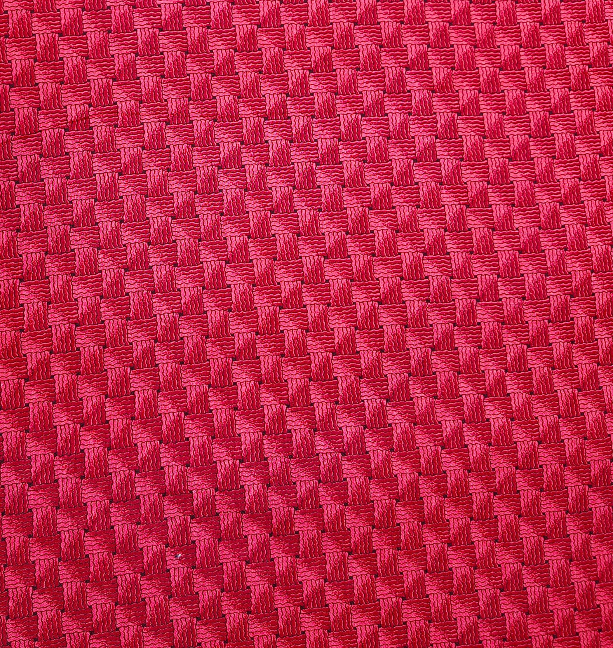 Rouge profond structuré par un tissage en damier discret, évoquant la précision d’un cuir gaufré.