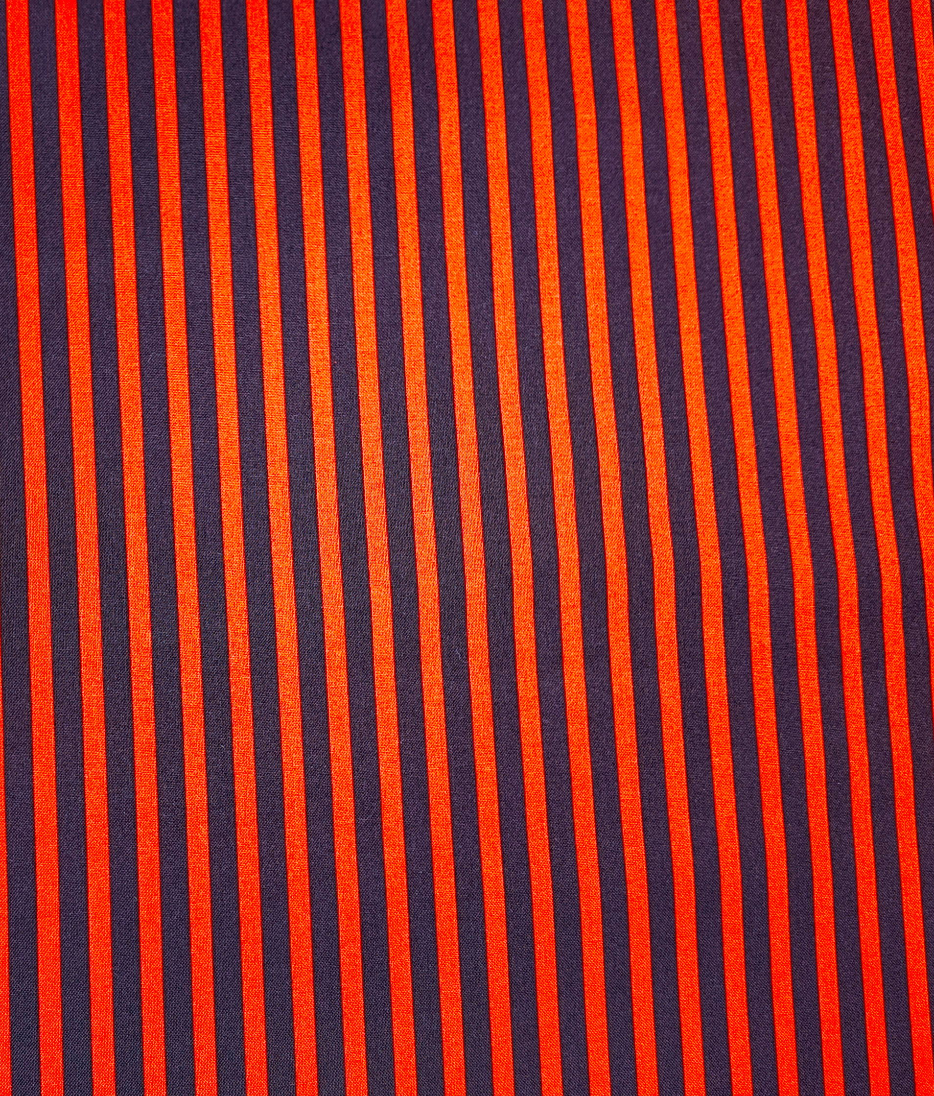 Des bandes rouge feu alternent avec des lignes sombres, évoquant la rigueur d’un tissu graphique et la chaleur d’un rythme soutenu.