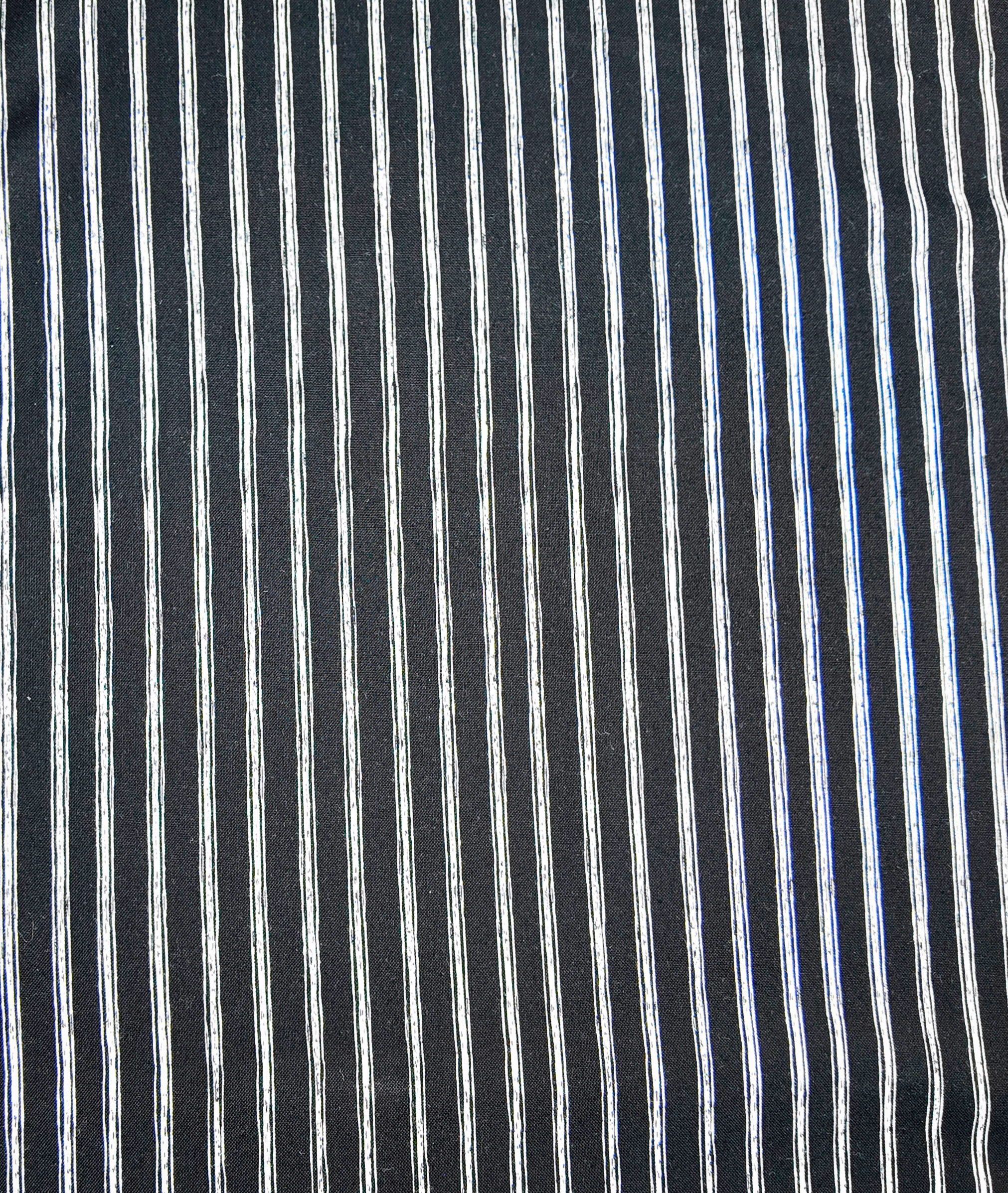 De fines rayures blanches se détachent sur un fond noir profond, dessinant une verticalité sobre et précise.