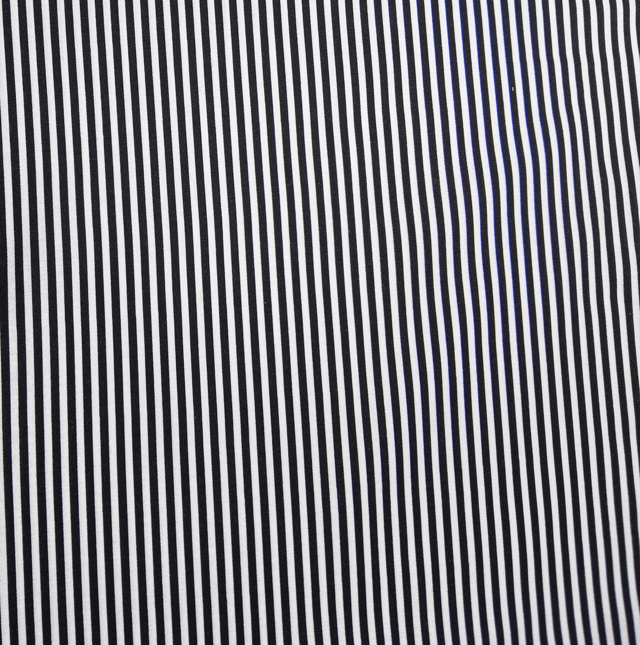Des lignes noires fines alternent sur fond blanc, créant un effet visuel raffiné et rythmé.
