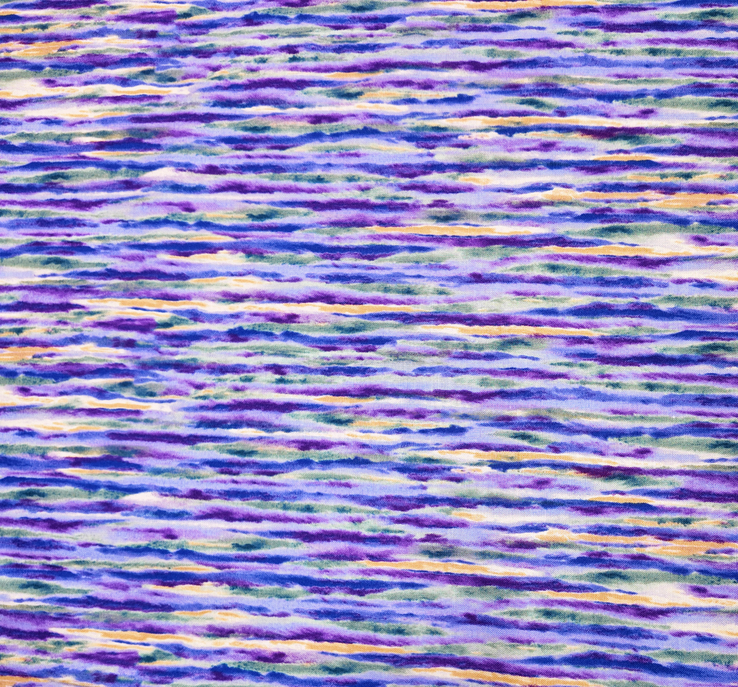 Des traits flous de violet, bleu et jaune s’étirent en couches douces rappelant un ciel d’aquarelle.