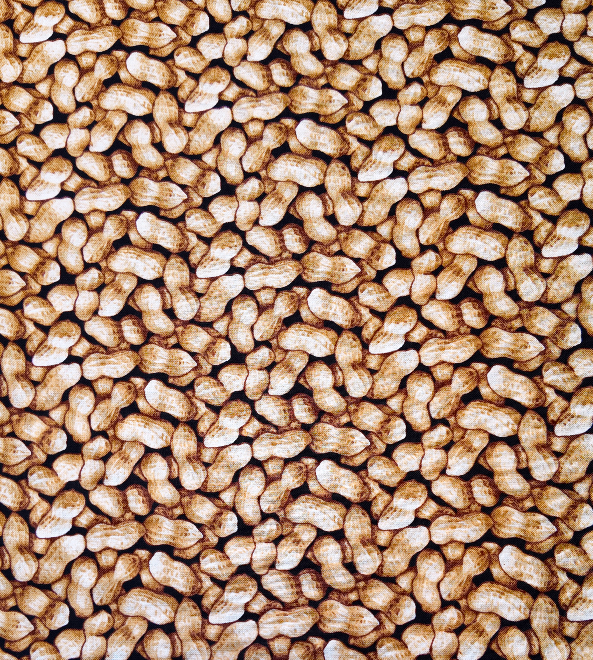 Un tapis de cacahuètes en coque couvre la surface dans une teinte chaude et dorée. Le rendu réaliste évoque la texture rustique des marchés gourmands. Motif petit et dense.