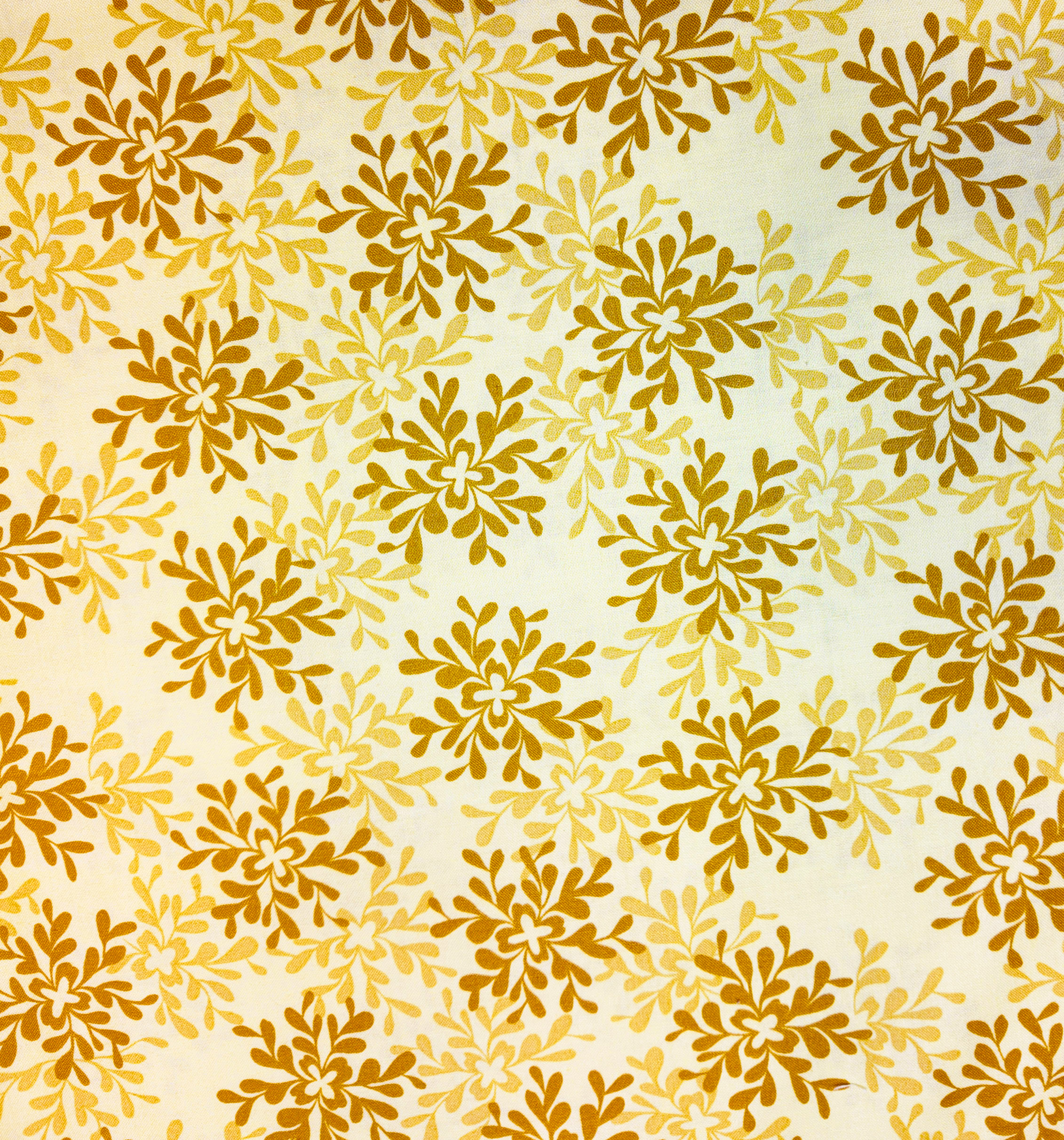Sur fond ivoire, des fleurs dorées s’épanouissent avec légèreté, rappelant la chaleur d’un soleil matinal. Le tissu rayonne d’une élégance douce et apaisante