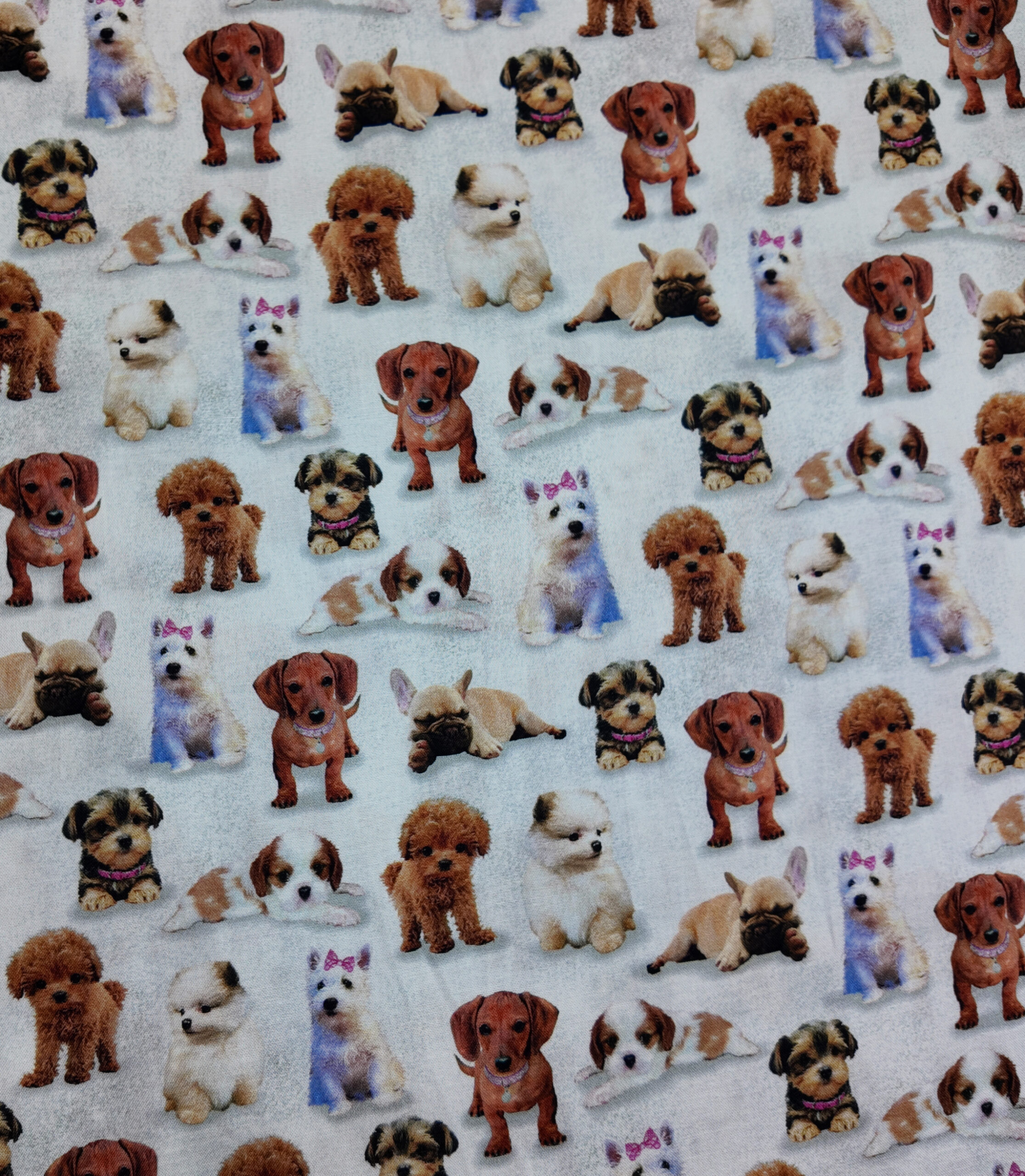 les chiots se succèdent en poses variées, chacun apportant une touche de douceur et de couleur à cette composition animée