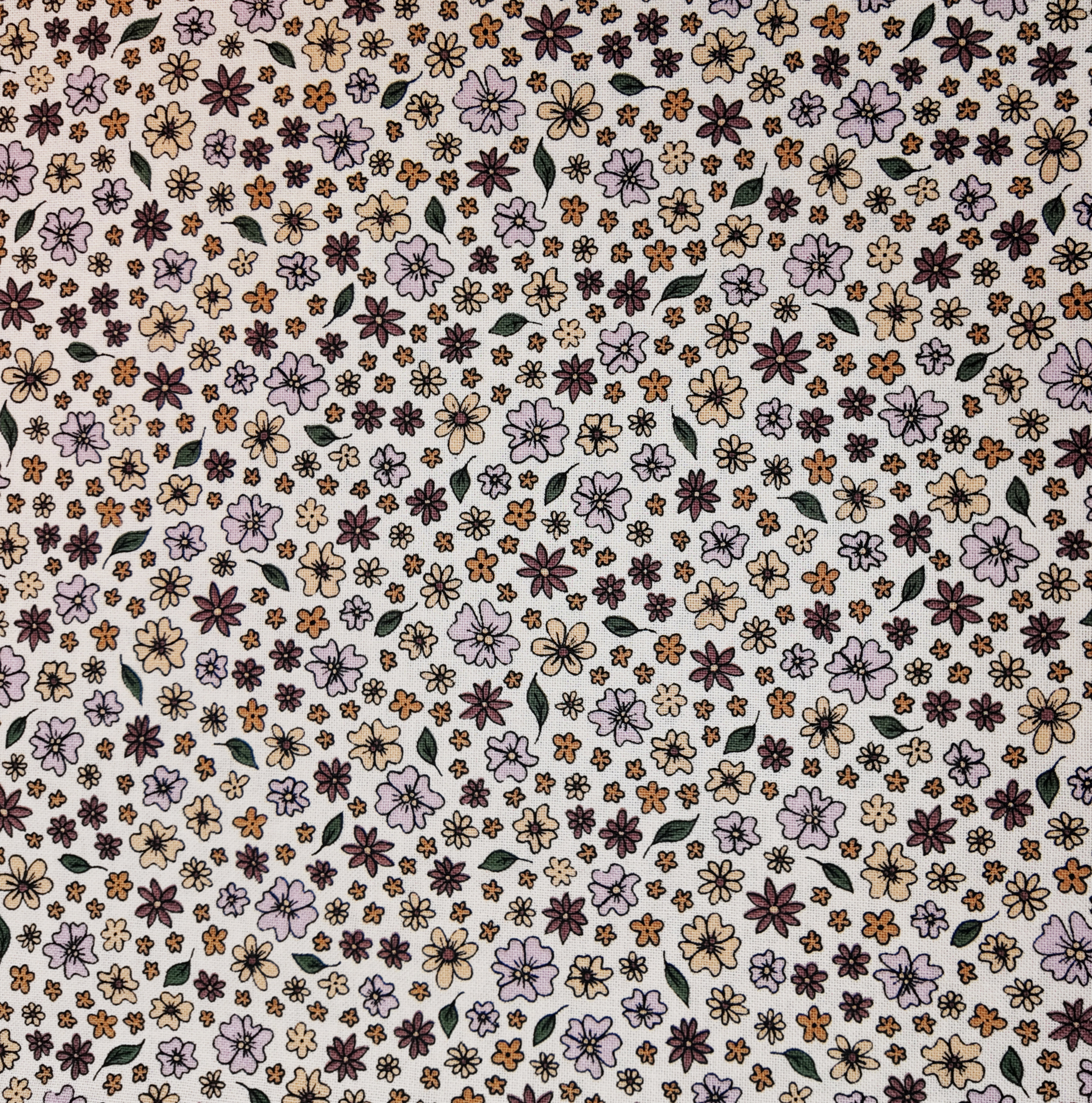 un parterre clair parsemé de fleurs violettes et ocre, comme un herbier vivant capturant le murmure doux des saisons.