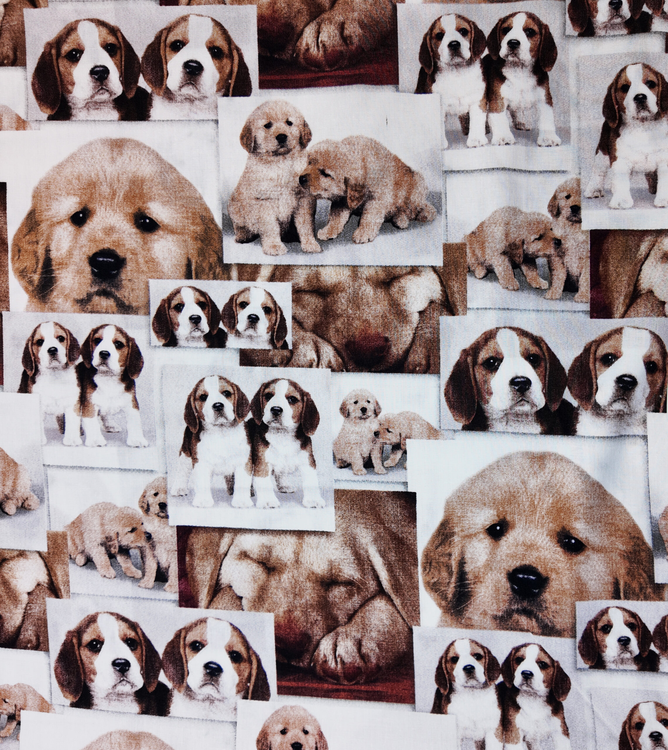 Une mosaïque attendrissante de chiots aux tons miel et crème compose un patchwork photographique, créant une atmosphère chaleureuse, douce et affective.
