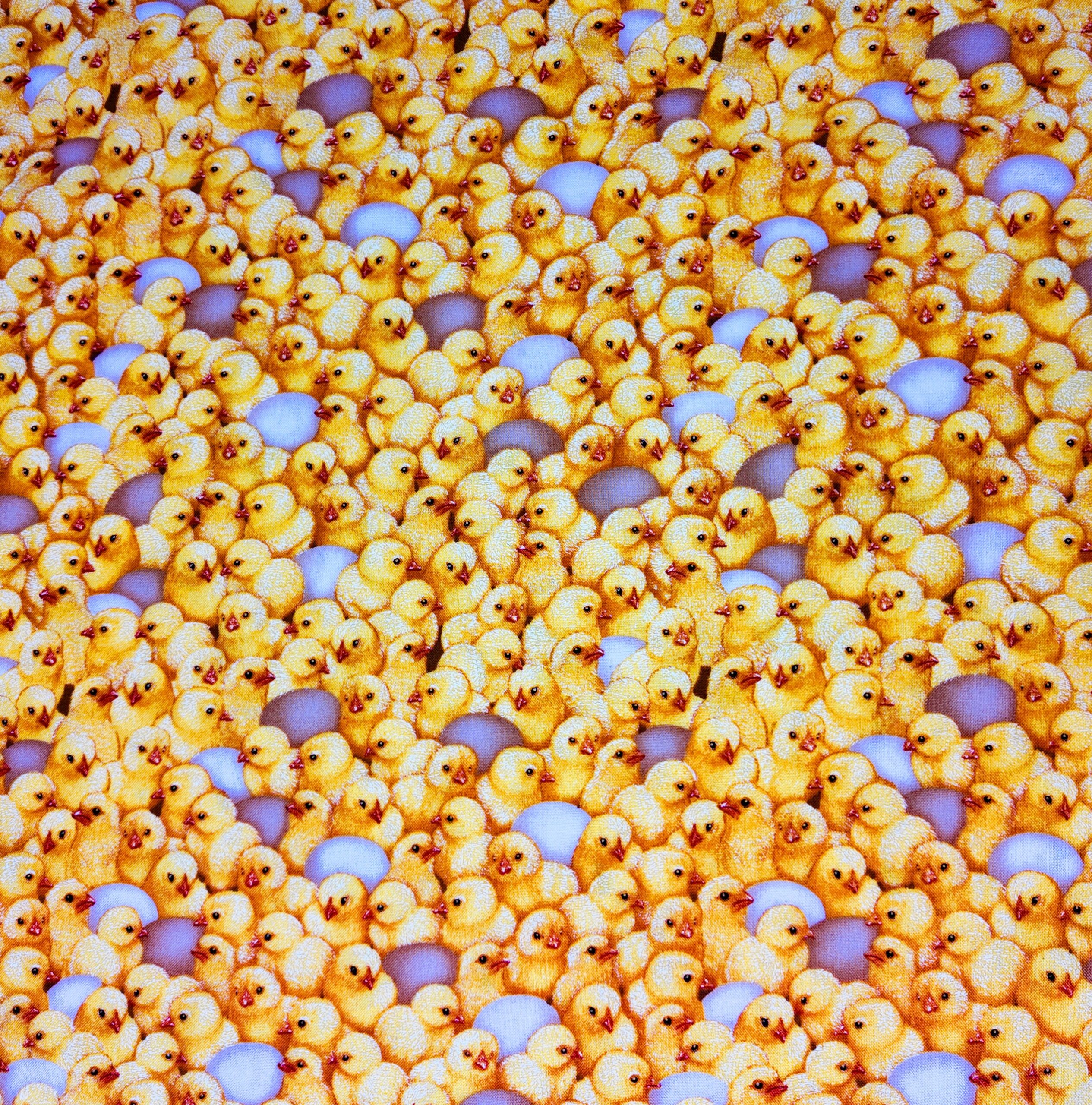 Une marée de poussins dorés aux regards vifs semble s’animer dans une chaleur lumineuse. Ce tissu rayonne d’énergie et de vie, comme un matin d’avril au poulailler.