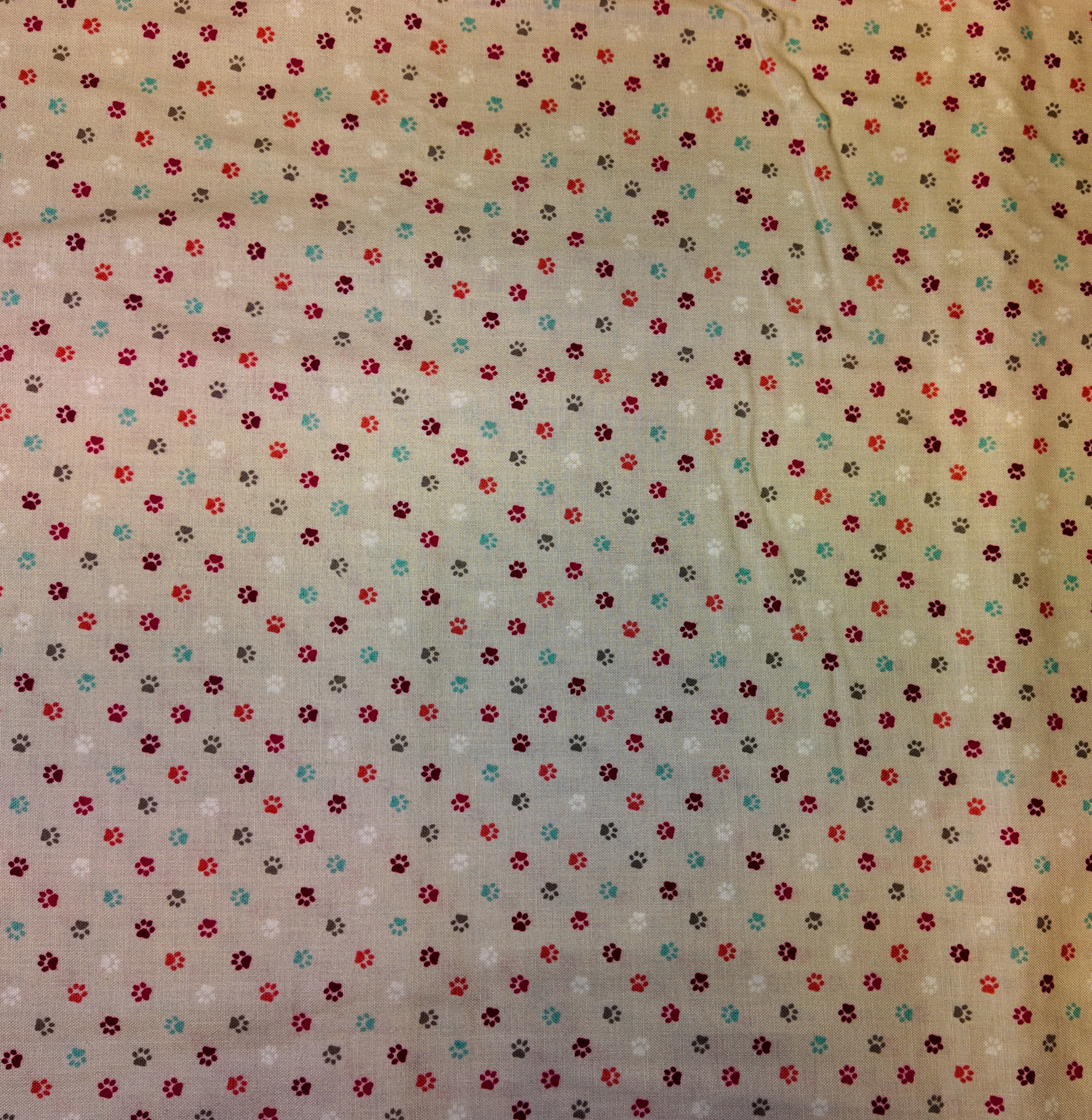De délicates pattes colorées parsèment un fond beige chaleureux. Les nuances pastel ajoutent une touche tendre et conviviale.