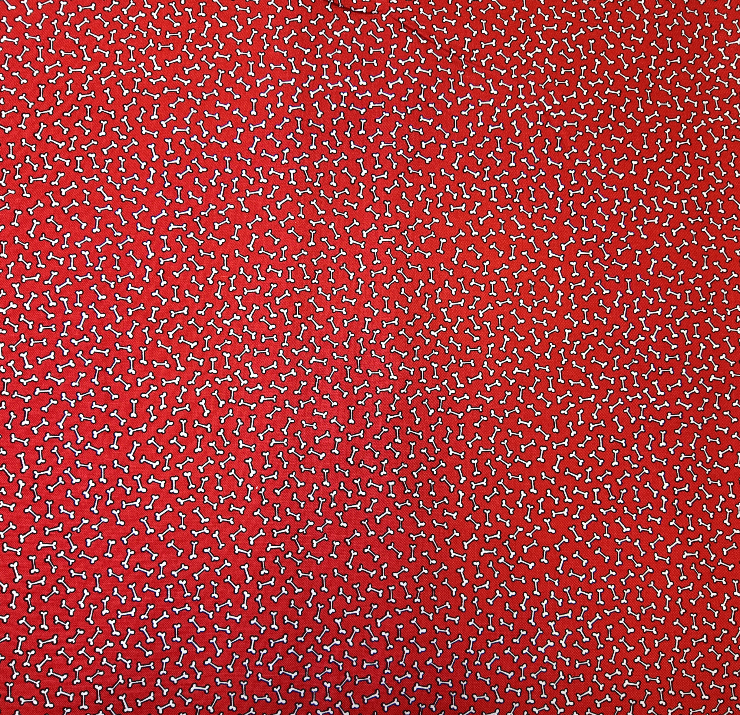 Sur un fond rouge éclatant, une pluie d’os blancs s’entrelace en un motif espiègle. Un clin d’œil amusant au monde des compagnons fidèles.