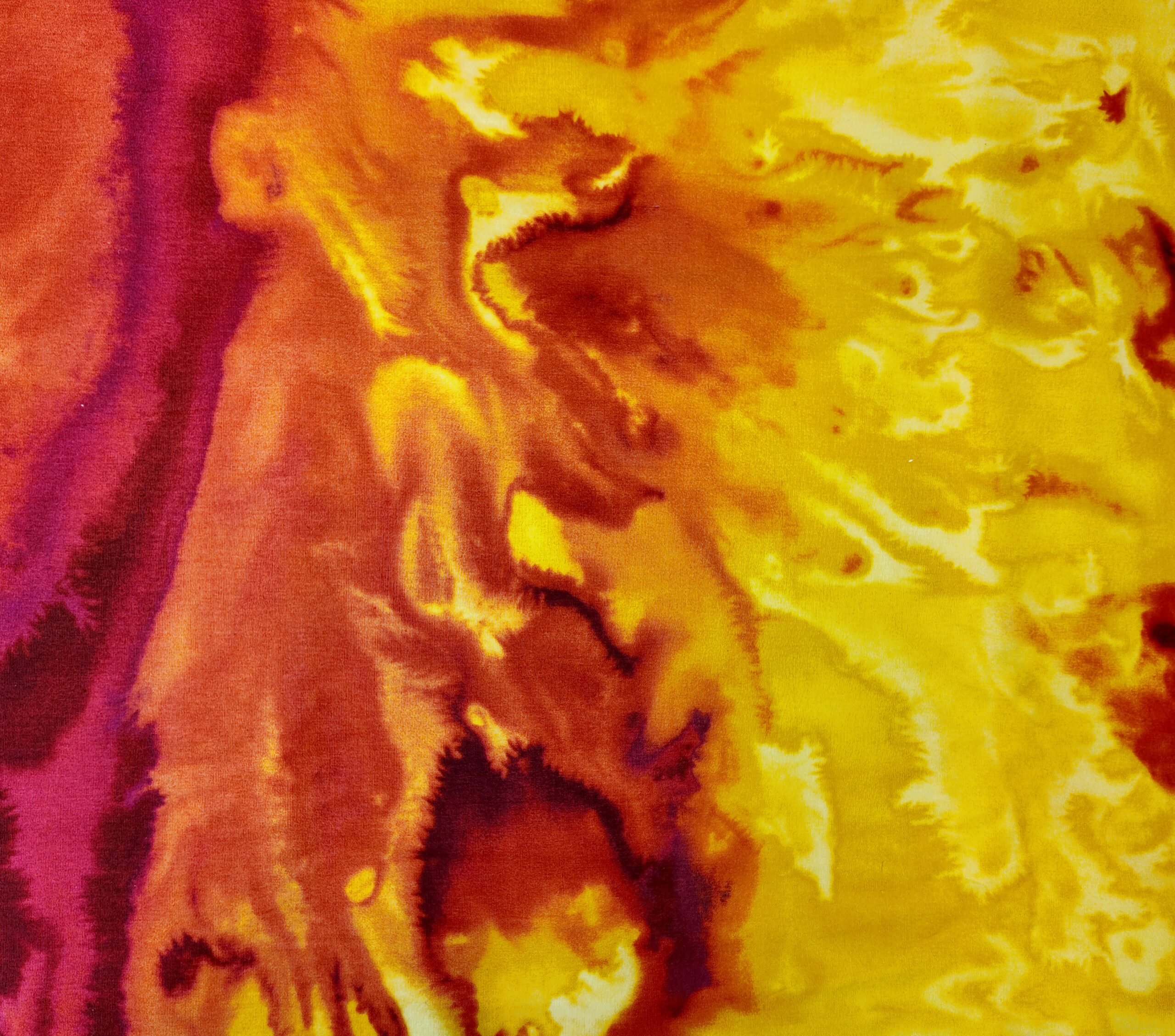 Un tourbillon de flammes dorées et ambrées évoque la chaleur solaire et l’énergie du feu. Un motif intense et lumineux, plein de mouvement.