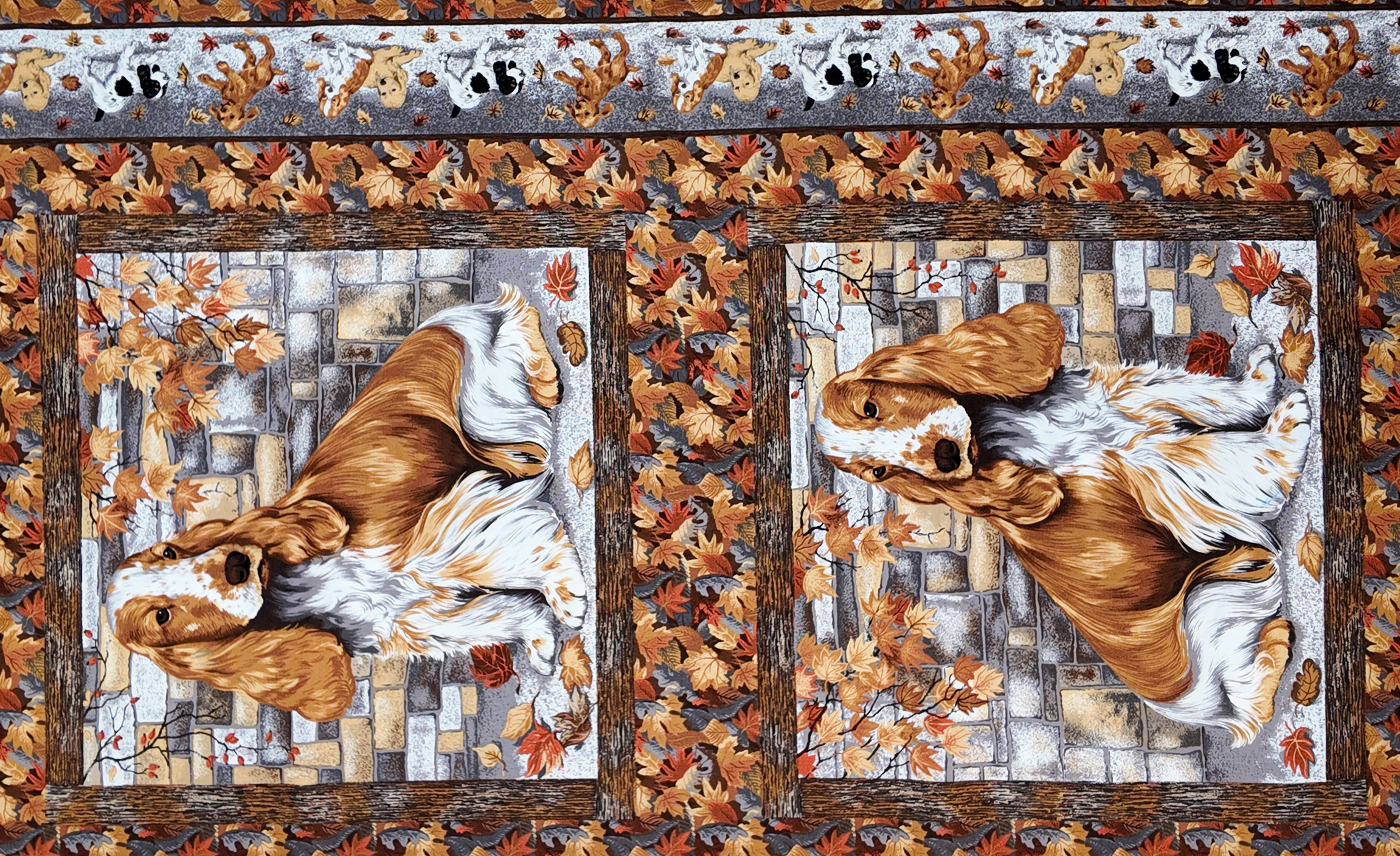 les chiens s’allongent sur un tapis de feuilles d’automne tandis que la lumière chaude illumine leurs pelages doux