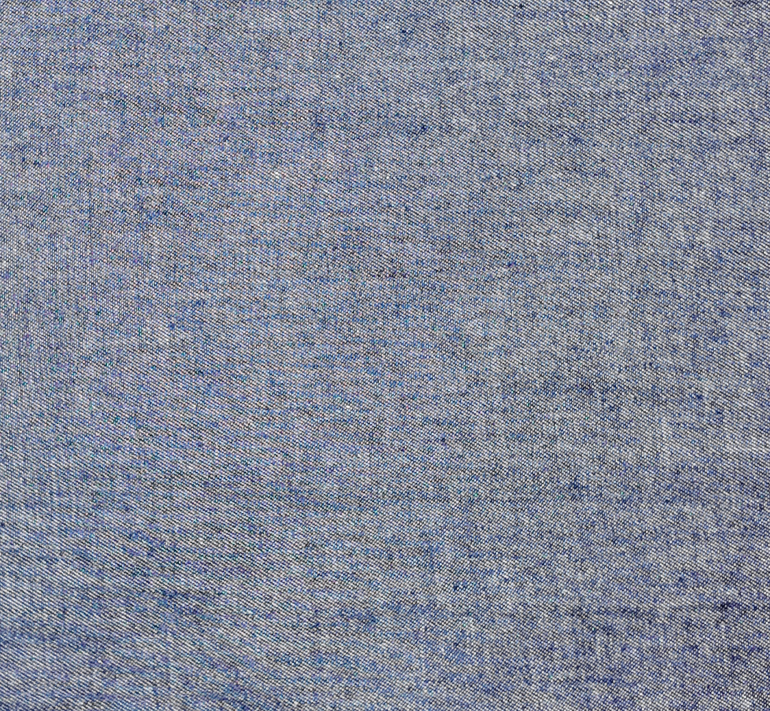 Denim bleu légèrement chiné, au tissage fin et équilibré. Sa teinte polyvalente allie sobriété et élégance dans un style indémodable.