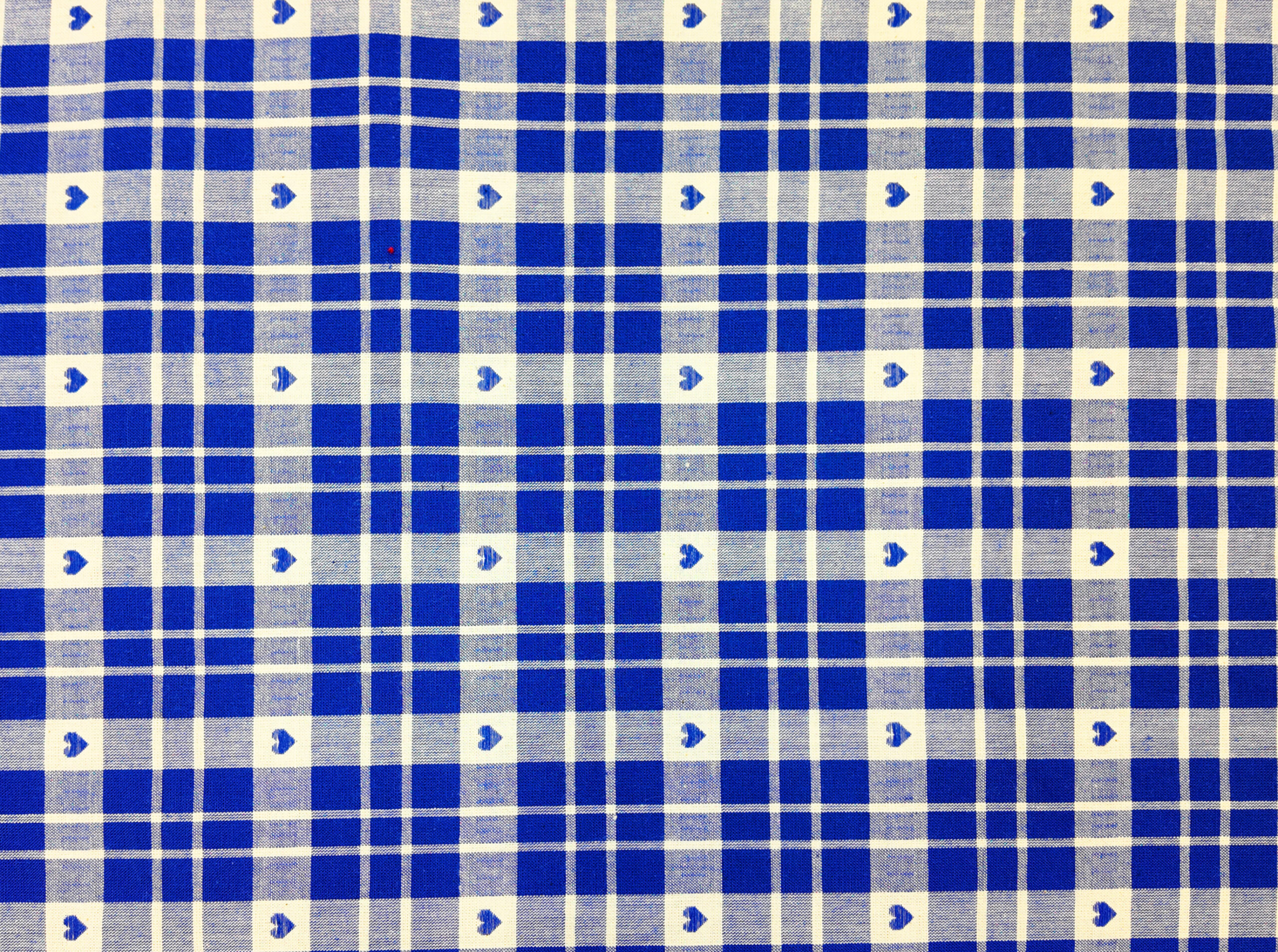 Carreaux bleus et blancs ponctués de petits cœurs, un motif tendre et lumineux qui respire la fraîcheur et la simplicité alpine.