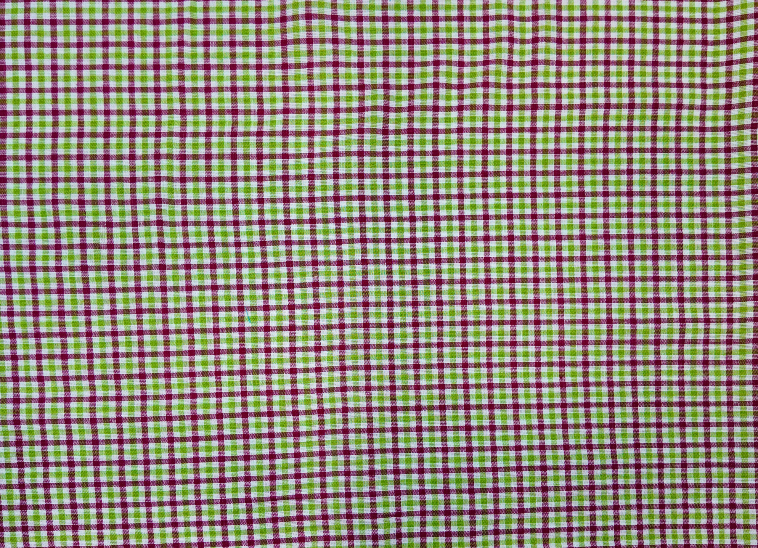 Petits carreaux prune et vert tendre, discrets mais vifs, évoquant les tissus champêtres et les chemises légères des beaux jours.