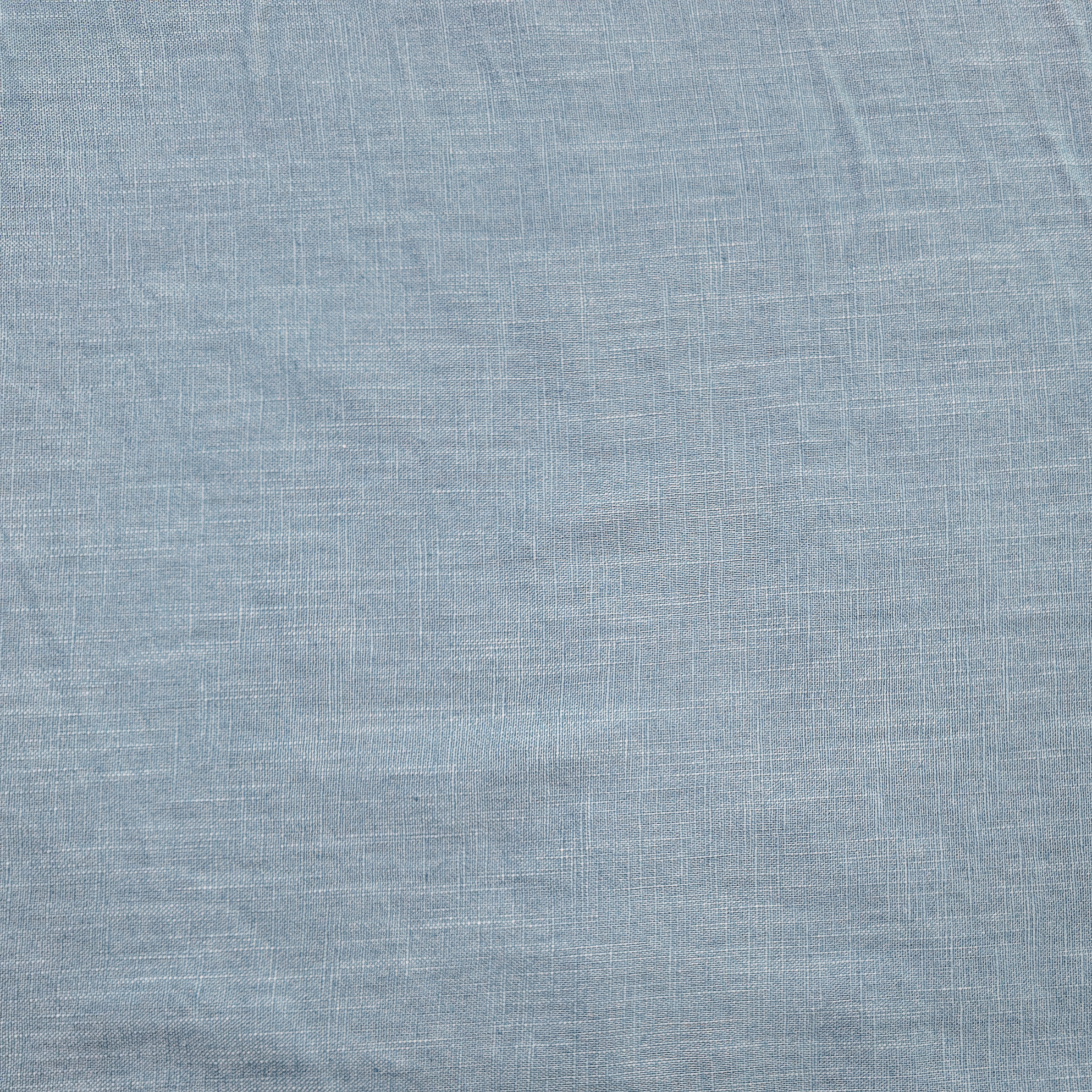 un bleu tendre légèrement éclairci, posé dans une matière aérienne où les fils se superposent dans une douceur presque vaporeuse. Une atmosphère paisible, comme un ciel clair.Tissus en lin