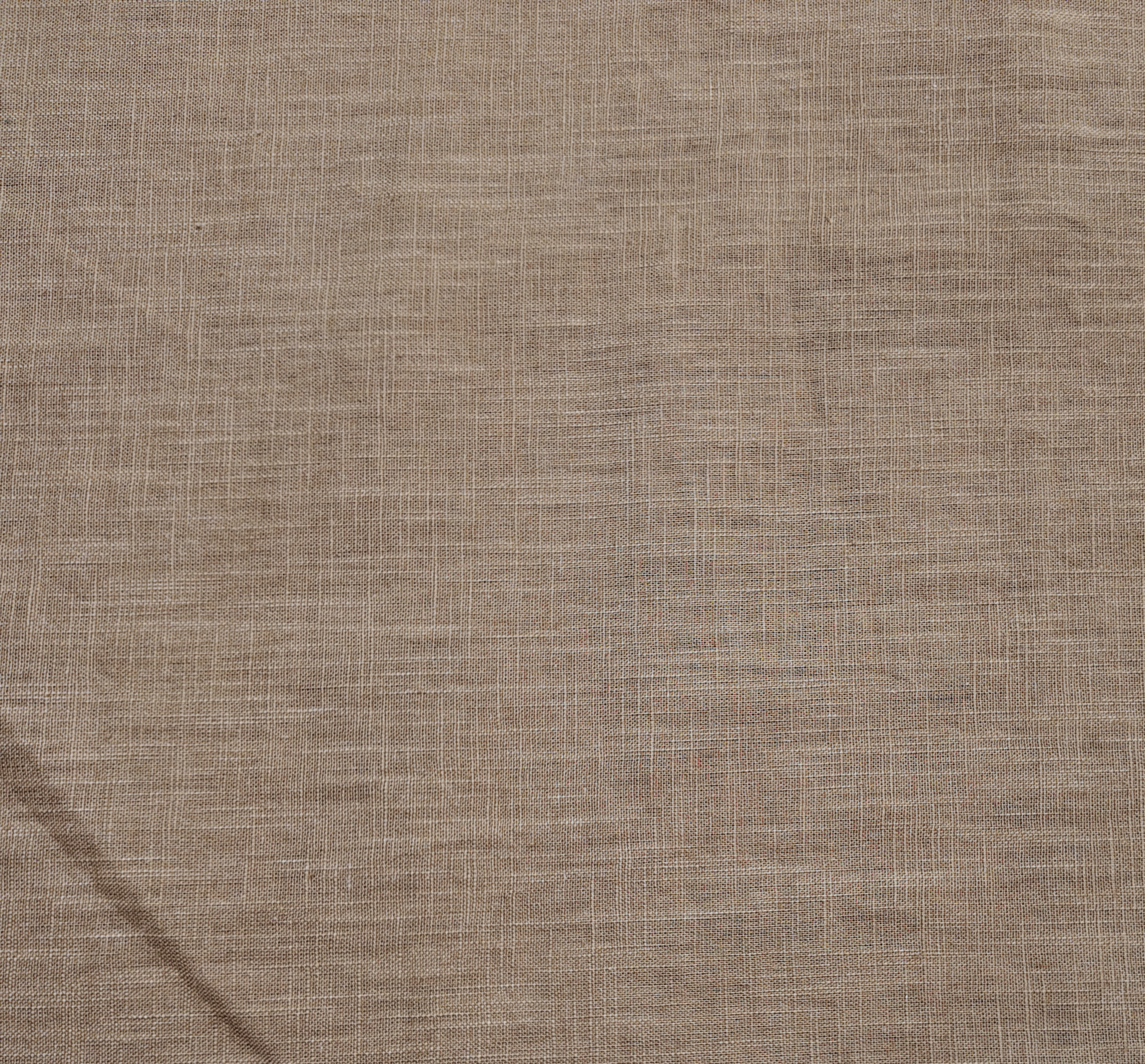 un brun doux légèrement sable, parcouru de fils visibles qui donnent un aspect vivant et naturel. La surface diffuse une chaleur délicate, rappelant la terre sèche sous le soleil.Tissus en lin