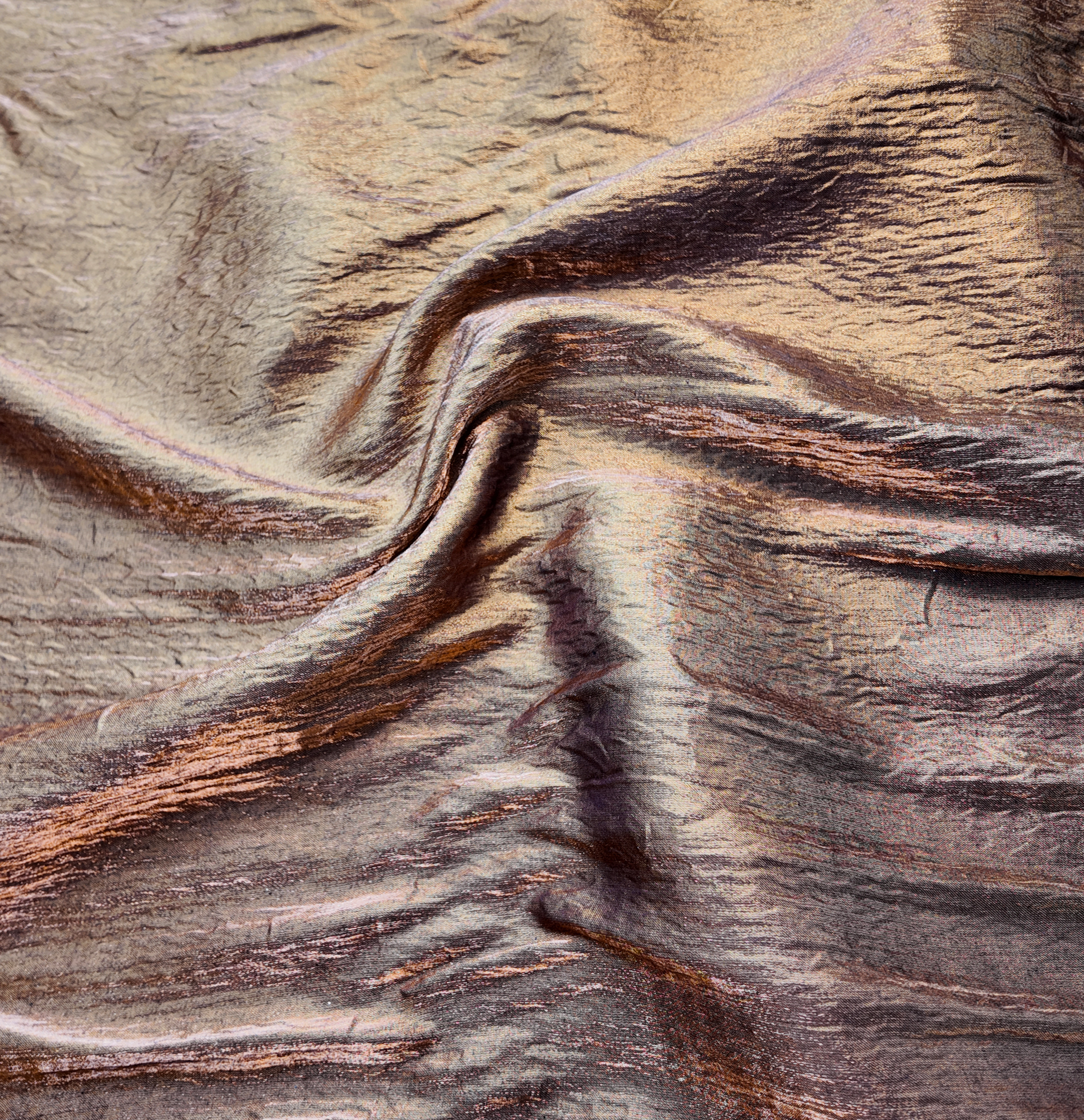 Des nuances bronze et prune se croisent en un éclat irisé, oscillant entre tons chauds et ombres violacées. La matière paraît profonde, presque mouvante.
