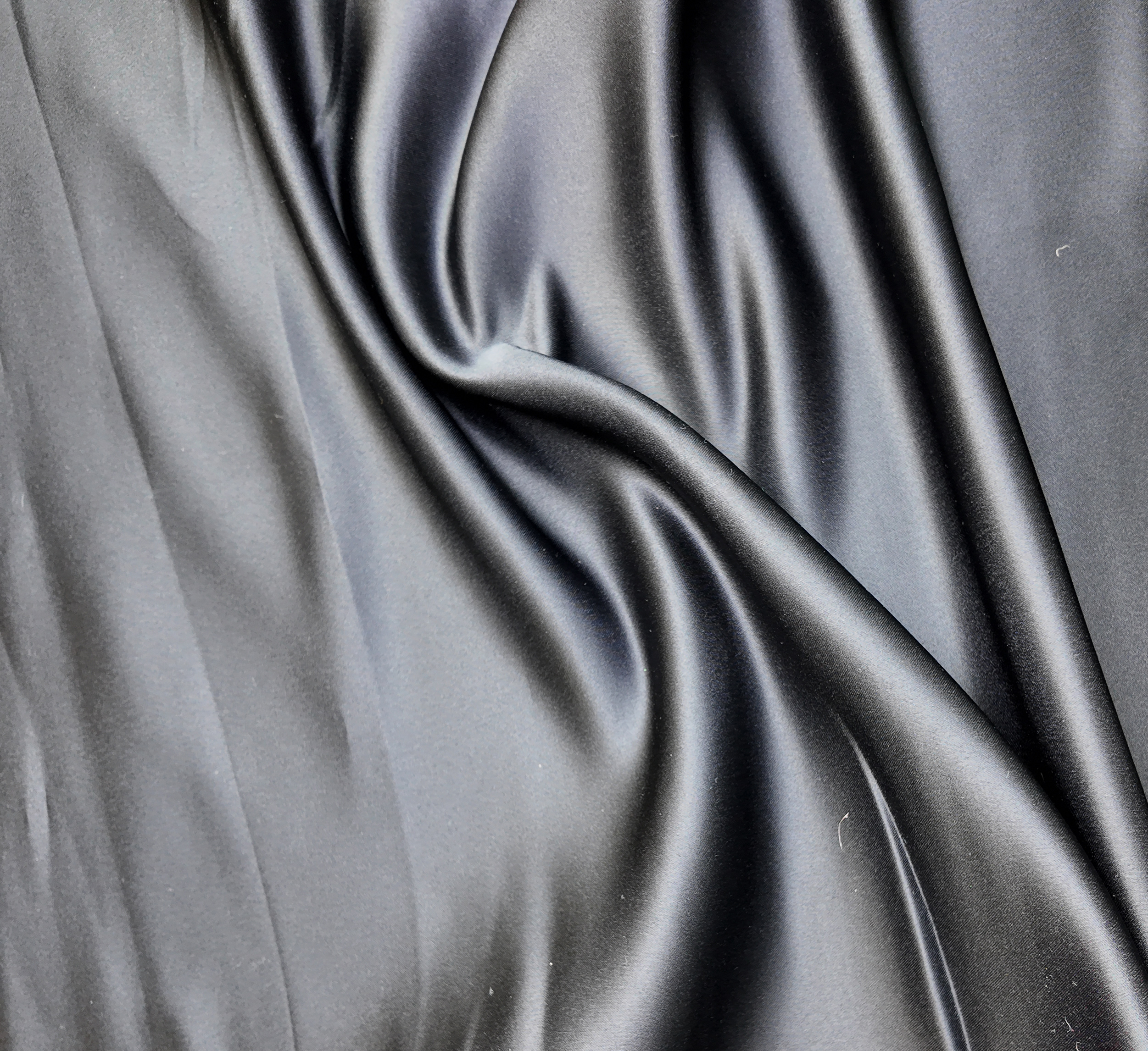 un noir lisse et lumineux, glissant sous la lumière comme un satin fluide. Les replis révèlent une brillance dense et élégante.