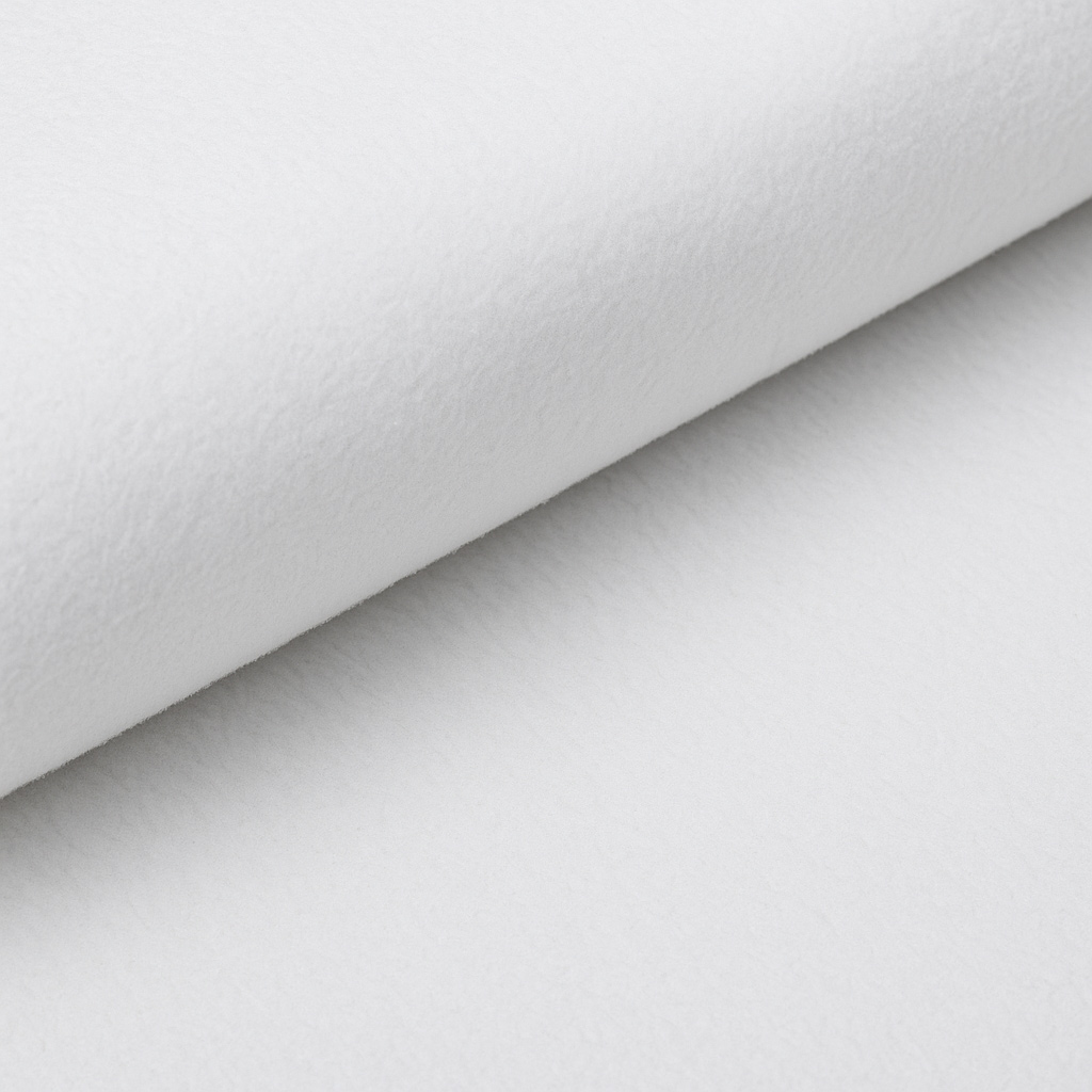 tissu polaire uni, au ton blond très pâle, presque ivoire. Sa surface moelleuse évoque la chaleur d’un cocon, prête à envelopper l’hiver de douceur et de lumière.